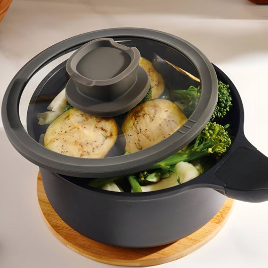 Onyx Ceramic Cooking Pot Non-Stick, Straining Lid