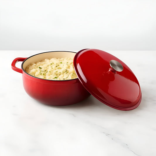 Vermillio Enameled Cast Iron Cooking Pot, Ombre Red