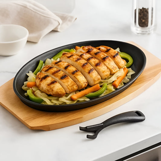 Savora Pre-Seasoned Cast Iron Sizzler, Wooden Tray