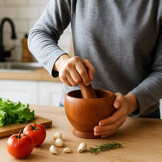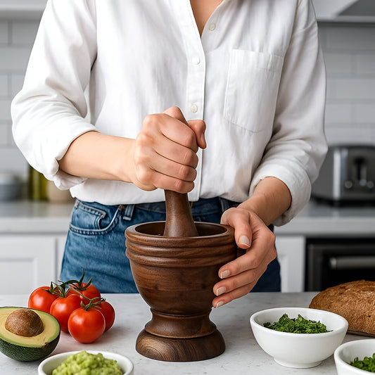 Arbor Acacia Wood Mortar and Pestle, Rustic Design