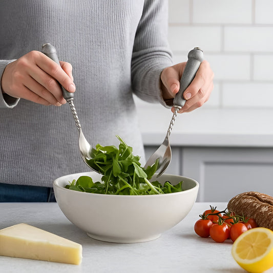 Lithos Marble Salad Serving Set Gray, Stainless Steel