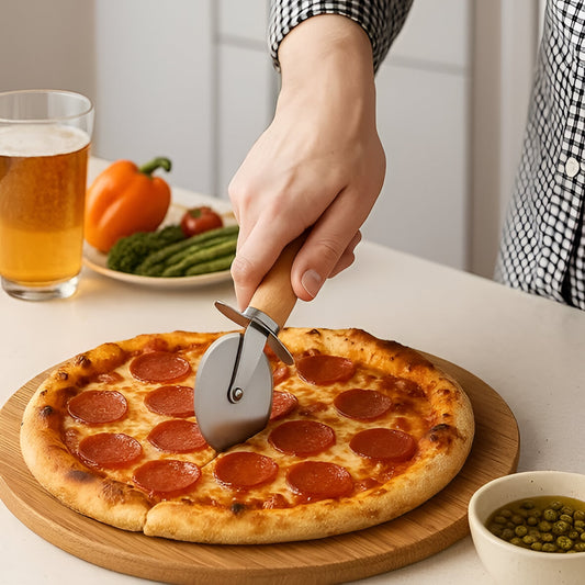 Silva Beech Wood Pizza Cutter Stainless Steel, Safety Guard