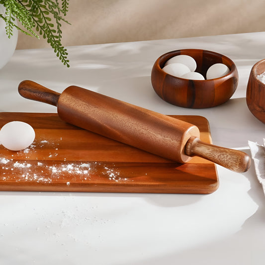 Silas Natural Acacia Rolling Pin 19.69", Ergonomic Grip
